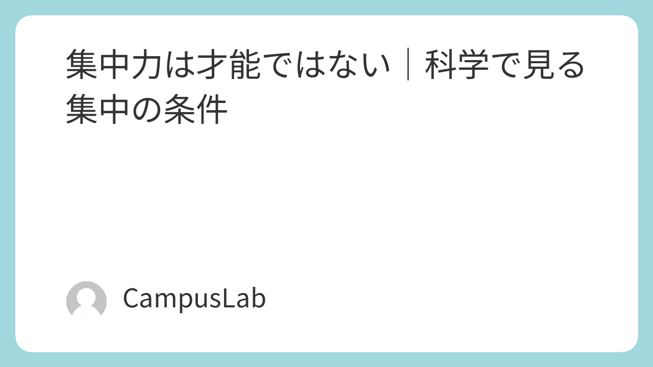 - 集中力は才能ではない
